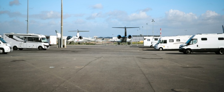 La noche ha sido tranquila en el parking parking Exposiciones de Le Bourget GPS N48.946022 E2.428654 de la Feria de París, esta ha sido nuestra última noche en este lugar.