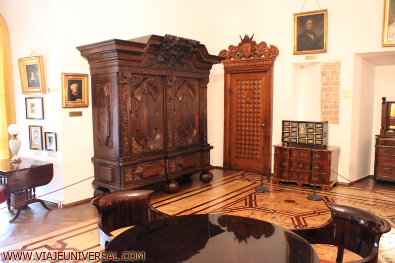 Pasamos a otra habitación donde vivía Celestyna Dzialynska, esposa de Tytus Dzialynski, luego fue ocupada por su hija Jadwiga Zamoyski, esta decorado con un gabinete de ébano del siglo XVII holandés con decoración china, un escritorio de nogal, muebles accesorios con incrustaciones de marfil, una silla de roble de estilo turco, sobre las paredes y en los muebles con recuerdos de familia, como retratos y fotografías.
