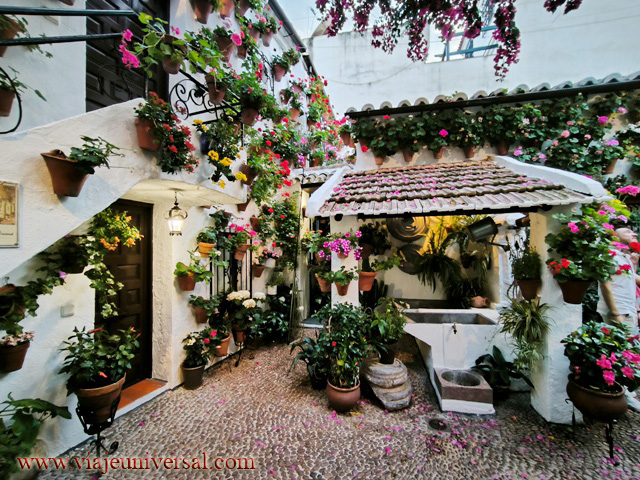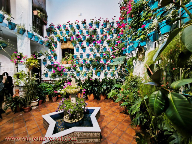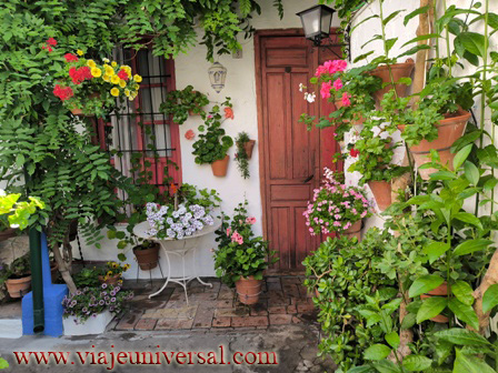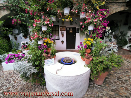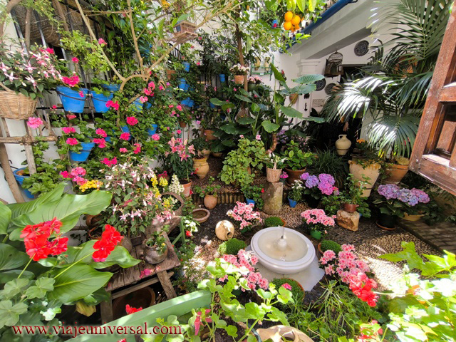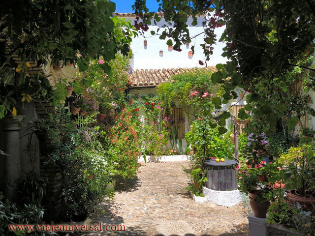 El siguiente patio Tafures 2 (GPS N 37.889696 W4.77452) es otro de lo más bonitos porque es tan reducido y parece mentira que en una cosa tan pequeña nos ofrece los mismos ornamentos de los patios mucho más grandes: su fuente, limonero, ficus, pajareras, tiestos. Todo dentro de una armonía sobresaliente.