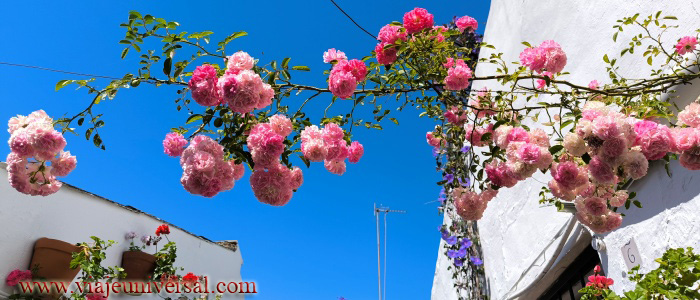 Todo el recinto es un vergel de color en las paredes y los tejados se encaran las buganvillas de diferentes colores, azucenas y jazmines les acompañan, sobre las macetas podemos ver geranios, madreselvas, rosales y gitanillas.