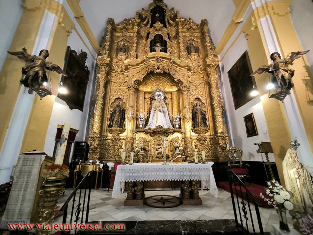 Esta Iglesia tiene sus antecedentes en el Convento del Carmen Calzado del siglo XVI, aunque las obras de la Iglesia comenzaron en el siglo XVII, y ha tenido numerosos avatares en su historia, tales como el desalojo del Convento en la entrada de los franceses a Córdoba en la Guerra de la Independencia, o la afectación durante la desamortización de Mendizábal. En el siglo XX ocurrió un derrumbe de la Iglesia y el Retablo fue trasladado a la Mezquita-Catedral, hasta que tras la reconstrucción volvió al templo carmelita. En la parte central del Retablo Valdés Leal pintó al profeta Elías subido en un carro de fuego que lo llevaba al Cielo, y también destacan en dicho Retablo las pinturas de las cabezas de los arcángeles San Miguel y San Rafael, así como las pinturas sobre los patrones de Córdoba los mártires San Acisclo y Santa Victoria.