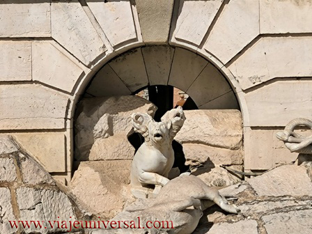 El diseño de la fuente es característico del estilo barroco, con una fuerte carga emocional y un alto grado de dramatismo. El barroco, especialmente durante el siglo XVIII, se centraba en la expresión de la emoción, el movimiento y la creación de efectos visuales impactantes. En esta fuente, el uso del agua y la escultura se combina para crear una narrativa visual que no solo atrae al espectador, sino que también lo involucra en la historia que se representa.