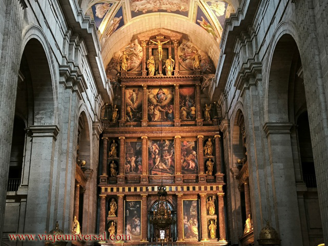Dentro de la Basílica destaca la obra de arte del Retablo Mayor fue realizado entre 1577 y 1584 bajo la supervisión de Juan de Herrera. La estructura del retablo se ajusta al espíritu del monasterio, con un diseño austero y racional, siguiendo las directrices renacentistas que excluyen la ornamentación excesiva. A diferencia de otros retablos barrocos que se caracterizan por su exuberancia y detalle, el de El Escorial es un modelo de equilibrio y armonía, al servicio de la espiritualidad y la solemnidad litúrgica.