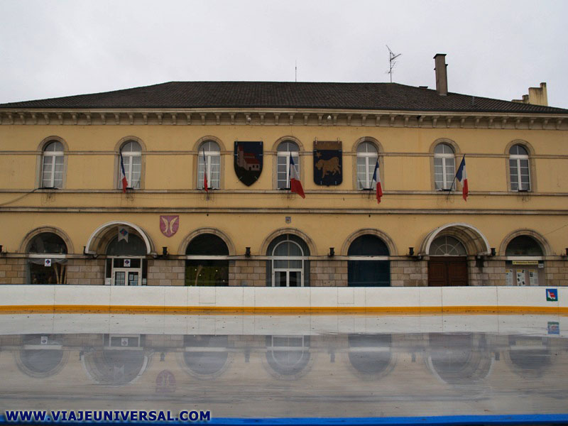 El edificio es un ejemplo de la construcción austera alsaciana, destaca en su fachada con la inclusión de los escudos de la ciudad. |