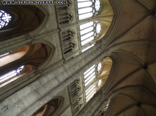 En el centro se encuentra el transepto con dos amplios rosetones cuyas vidrieras iluminan el interior. Da pasa a la girola con su deambulatorio accede a la capilla mayores.
