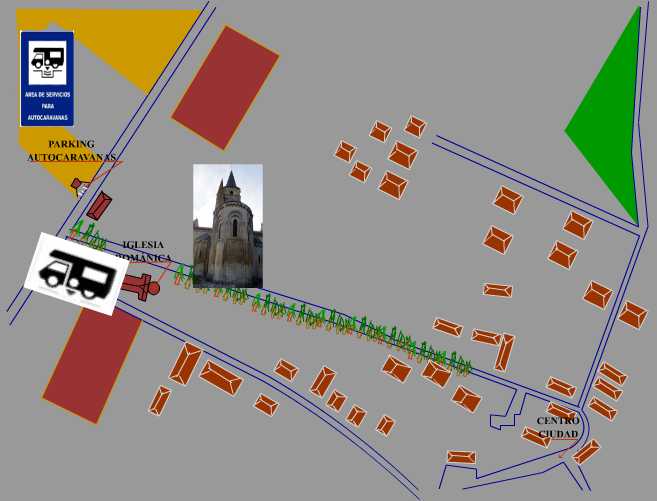 El parking utilizado para la visita a Aulnay de Saintonge se encuentra en una transitada, carece de cualquier servicio para las autocaravanas, elegimos este punto por la cercanía de 50 metros a la iglesia románica, las coordenadas GPS son: N 46.02438 // E 0.35557.