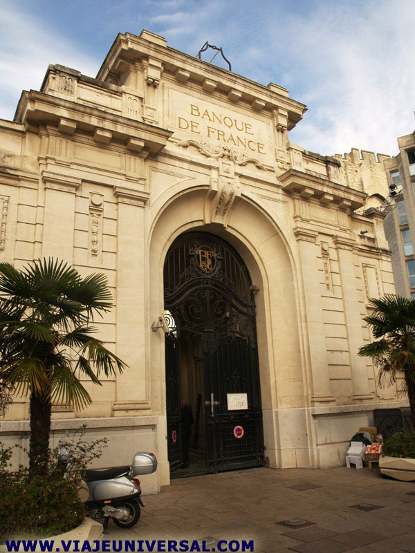 El edificio que alberga la Banque de France se encuentra situado en la plaza de l'Horloge, es una de la sucursales del Banco Central Frances.