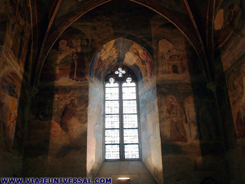 La capilla de San Juan tiene una bóveda ojival iluminada por tres ventanas con un mainel central. Esta decorada con frescos pintados por Matteo Giovannetti entre 1346 y 1348, se pintan temas sobre las vidas de los dos san Juan: Juan Evangelista, fue el primero de los apóstoles depositario de la palabra de Cristo, se representa en las paredes Sur y Oeste; o la figura de Juan Bautista, fue precursor del Mesías y se representa en las paredes Norte y Este. |