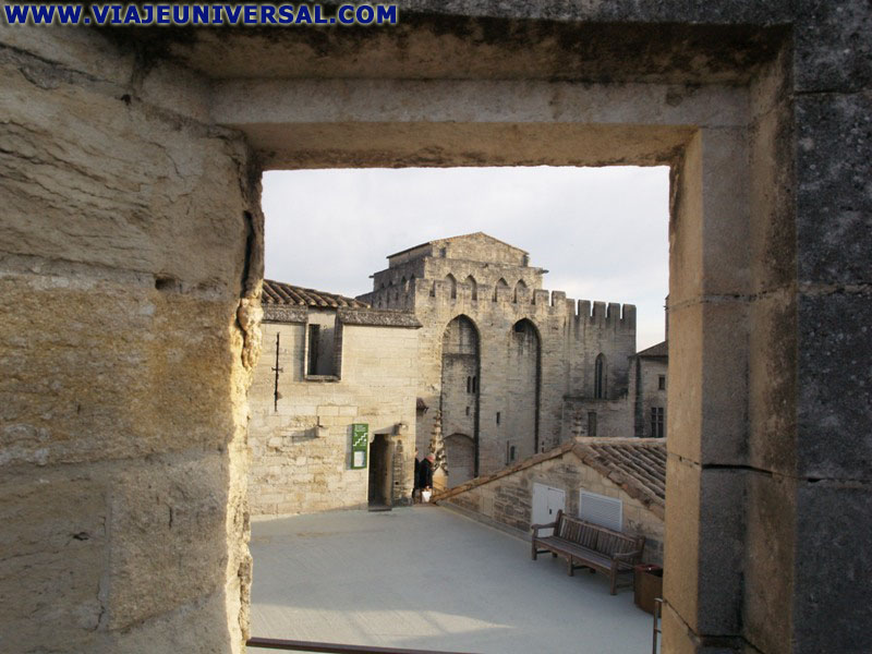 En lo alto del Tour d'Angle tiene un saledizo que ofrece una magnifica vista sobre la plaza de los Papas y la vista llega hasta Villeneuve-lés-Avignon, el río Ródano y la ciudad de Avignon a sus pies. |