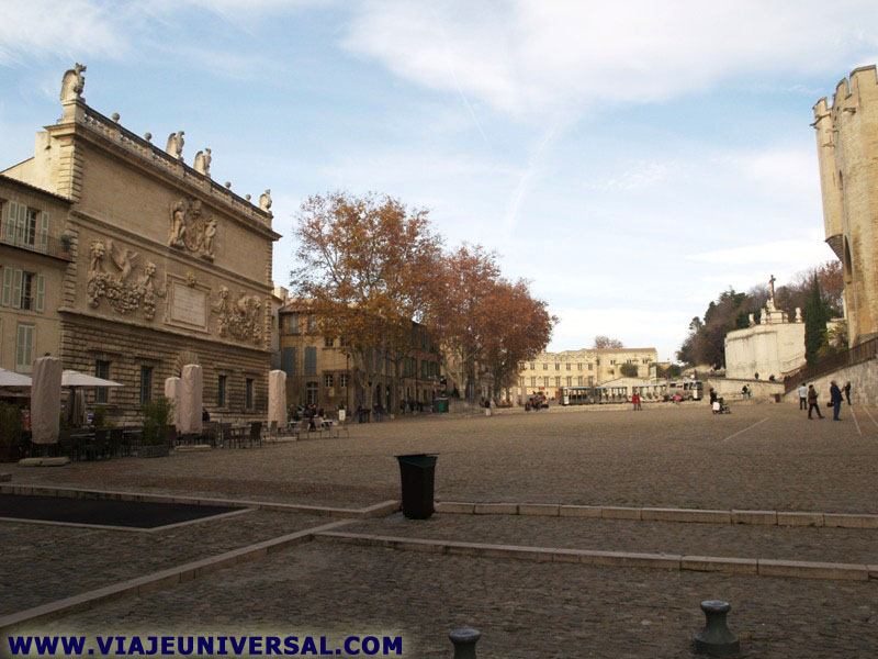 La plaza de los Papas de Avignon ocupa una gran explanada de 240 metros de 48 metros. Tiene los monumentos más importantes de Avignon como el Palacio de los Papas de estilo gótico, frente a la Casa de la Moneda, la catedral de Notre Dame des Doms, mientras que en la parte inferior se encuentra el Petit Palais. |