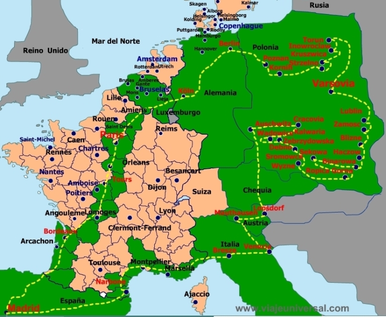 Además queremos aprovechar nuestro paso obligado por Francia o Alemania para hacer una pequeña selección de puntos cercanos a nuestros destinos diarios que queremos aprovechar para adornar nuestro recorrido, también en la parte final podemos añadir algunos puntos en Austria o en Italia. Todo esto a un ritmo vertiginoso que solamente se puede hacer tiendo una gran información del recorrido para que las visitas sean eficaces.