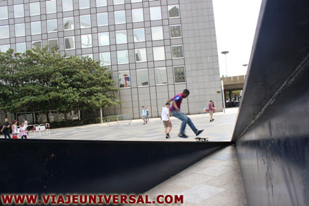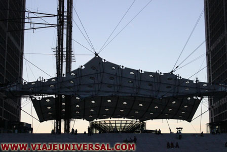 Estoy en la Place des Degrés, es como tener la llave de una puerta invisible que te sumerge en el proyecto urbanístico del siglo XX con vocación para ser ampliado en el siglo XXI. A mi izquierda esta el edificio Pascal, a mi derecha el edificio Voltaire, subo las escaleras que me conduce a un promontorio desde donde se denomina la Plaza le Dôme, esto nos conduce a un laberinto donde se encuentra el edificio UGC Ciné Cité, a la derecha el Centro Comercial Le Quatre Temps, este es el punto llamado Elysées la Défense desde aquí se puede bajar a la explanada Le Parvis, a las espaldas el Gran Arco de la Défense, de frente, el eje imaginario que divide el barrio en dos y que soñó el presidente Françoise Miterrand y que proyectado sobre la ciudad de París, en su imaginación formaría un perfecta recta constituida por el Arco del Triunfo, los Campos Eliseos, la Plaza de la Concordia y terminaría en la Pirámide del Louvre.