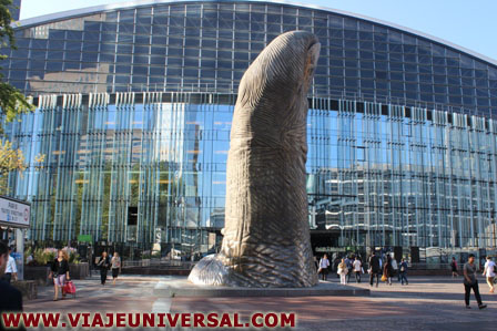 Sigo de frente, a mi izquierda dejo el edificio Les Hollines de l'Arche, llegó a la gran plaza Carpeaux, estoy guiado por un gran faro, en realidad es un gran dedo, la gente esta a lo suyo, todos pensando en llegar a su oficina antes de las 8,00, nadie mira alrededor para darse cuenta del espectáculo arquitectónico por donde transita, seguramente desde que fueron contratados nunca lo hicieron, para algunos, es como llegar a una sórdida fabrica en los suburbios de París, el nombre de la escultura es “Le Pouce”, obra de César Baldccini, fue instalada en 1965 y aunque parezca un simple dedo , las proporciones de su tamaño son semejantes a los edificios que apunta, 12 metros .
