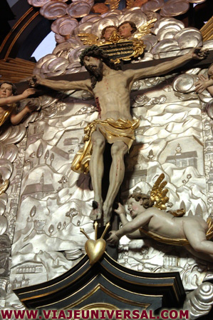 El crucero tiene dos rosetones en los extremos de un bonito colorido que hablan de la Gloria de la Jerusalén Celestial, esta parte fue terminada en el siglo XIV.