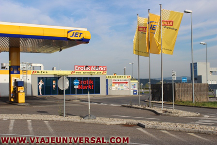 Hacemos un pequeño descanso nada más entrar en el País Vasco. La frontera lo marca un túnel en una montaña para indicar que hemos llegado, tomamos un café, y un dulce , como antídoto contra la fatiga, las coordenadas GPS del lugar corresponden con N 42.70464 // W 2.94787 . Antes de abandonar la frontera española aprovechamos para llenar el depósito de combustible, seguro que no volveremos a ver durante el viaje estos precios de 1,36 €. Litro.