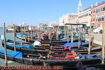Gondolas a la altura del puente Scalzi, Venecia