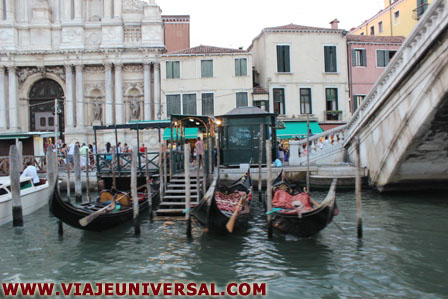 Pasamos por unos de los puentes más famosos de Venecia y que es uno de sus iconos, es el Puente de Rialto, cruza el gran Canal en el barrio más comercial de Venecia. Es la primera construcción de piedra sólida porque hasta ese momento los puentes de Venecia eran de madera, tiene una anchura de 48 metros a una altura de 7,5 metros y esta inspirados en la imagen de los puentes chinos.