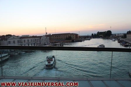 Llegamos a la estación de vaporetto Piazzale de Roma, nos paramos y bajamos para admirar el puente de la Constitución, o también conocido como el puente de Calatrava, fue construido en el año 2008 y forma parte del cuarto y ultimo puente sobre el Gran Canal.