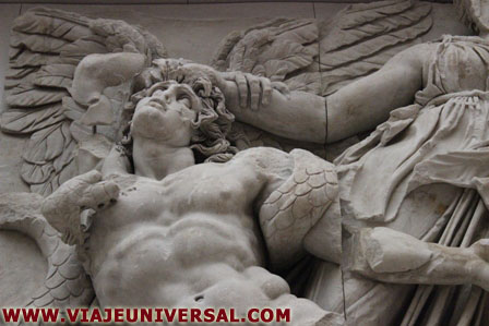 A sus pies esta otra de las obras de arte de Igor Mitoraj retrata de la estatua Ikaria, fue construida en 1996, se representa un hombre o quizás una mujer (el sexo esta tapado por una cabeza) es un ser alado , sin cabeza, una mano sujeta su pie derecho para evitar de esta forma que pueda volar en libertad.