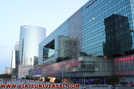 A la izquierda de la gran plaza tengo a mis pies el Tour Cnit, es uno de los primeros edificios levantados en la zona, es propiedad del Centro de Nuevas Industrias y Tecnologías (CNIT) fue construido y utilizado por primera vez en 1958, destaca por la parábola que describe la techumbre.