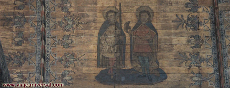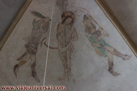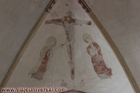 Sobre la zona del púlpito si miramos a la bóveda encontramos dos frescos de la época Cristiana, representan escenas de la crucifixión y el azotamiento de Cristo. También en las claves de la bóveda se puede ver los restos de la antigua policromía que tenia la iglesia.