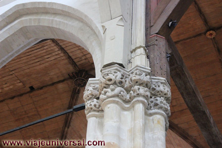 La nave tiene unos arcos apuntados que descansan sobre columnas donde algunos de sus capiteles están policromados y otros fueron decorados con motivos vegetales. Las paredes fueron rellenadas con mortero de cal y luego fueron encaladas lo que ha favorecido en que en algunas zonas hayan aflorado en conjunto de frescos, en otras zonas que no están restauradas se esperan que nos ofrezcan nuevas sorpresas.