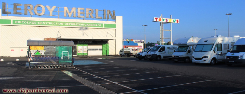 No menos problemático es acercarse hasta el centro comercial Le Lac porque esta cortado el acceso directo al parking del supermercado Auchan, damos varias vueltas por la zona y al final conseguimos entrar en el aparcamiento del Leroy Merlín, sin pensarlo dos veces allí nos quedamos a pernoctar.