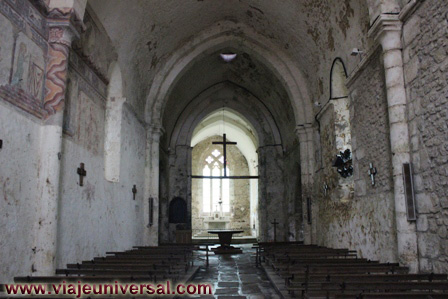 En el interior nuestra vista se va directamente a los frescos que ocupan la parte izquierda, fueron descubiertos por Jean Françoise Challet y Chamard durante la rehabilitación de 1948.