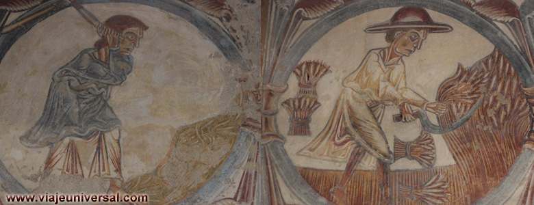 Frescos del calendario en la Iglesia románica Notre-Dame Pouzauges (Francia) |