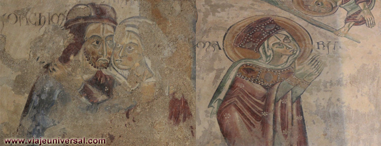 En la pared oeste y durante la última campaña de restauración aparecieron dos dibujos, en uno se ve a Caín y Abel donde podemos distinguir también a un león. Y en el segundo cuadro aparecen las figuras de Adán y Eva.