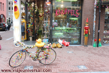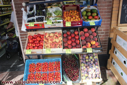 Encontramos abierta una frutería que tiene muy buena pinta, la mayoría de la fruta expuesta, excepto las fresas que son holandesas, son españolas. En principio me llama la atención porque los precios son muy similares a los españoles, tienen nectarinas, ciruelas, uvas rojas y verdes, paraguayos, cerezas. Pensando un poco como es posible estos precios, me fijo nuevamente y aquí unidad de medida del peso es de 500 grs., ya me cuadra en Holanda la fruta española cuesta el doble que en España y ellos para compensarlo compran la mitad, es un reacción lógica de la cultura calvinista.