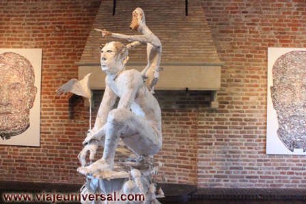 Couzijn Lions trabaja haciendo esculturas con cartón. Para esta exposición que reconstruye tres imágenes de las esculturas desaparecidas del antiguo ayuntamiento en Kampen, y que se exponen con las restantes originales.