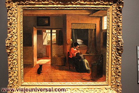 Tenemos mucha suerte porque vemos una casa tradicional que indica en su fachada “kamers te huur” habitaciones en alquiler, nos atiende su dueña que no tiene reparos en que veamos como es el interior de este tipo de casas, aunque esta muy rehabilitada pero conserva su sabor tradicional, en el interior tiene los trajes típicos de sus hijos que ha decido ponerlos en un maniquí para poder exponerlos y que no se pierdan en el tiempo, también atesora un traje típico para las bodas, esta elaborado en casas de costura artesanales, ¡es precioso!. El salón tiene una magnifica chimenea a gas, nos indica que en muchas casas se ha sustituido en viejo sistema de calefacción de leña por el peligro de incendio con los tejados al saltar un chispa.