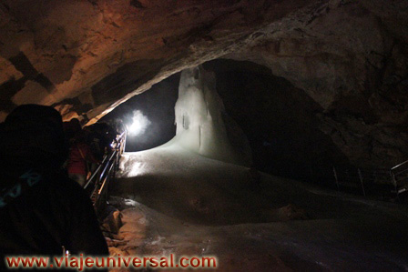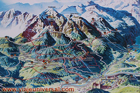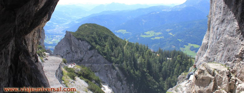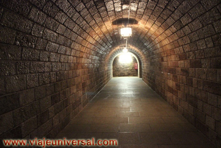 La vista comienza por un largo túnel excavado en la roca por un momento viene a mi memoria quizás alguna parte de la Cruz de los Caídos en el Escorial, era la sensación de haber estado con anterioridad en ese sitio, quizás no hay nexo de unión salvo que están los dos lugares en la montaña y solamente se unen por su ideología fascista.