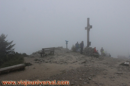 Abandonamos el refugio por un camino que nos conduce a la parte más alta de la montaña, las nubes poco a poco van ascendiendo y se van haciendo dueñas del azul claro del cielo. Una enorme cruz de madera con la inscripción 2003 indica el momento de su colocación esta decorada con una enorme flor edelweiss, la verdad es que no se a qué obedece poner esa flor ya en esta época porque también era un emblema para el nazismo. El nombre Edelweiss en alemán remite a la “pureza blanca” o “nobleza blanca”, lo que puede interpretarse como un símbolo del paradigma de la supremacía aria que pregonó y propició el nacionalsocialismo.