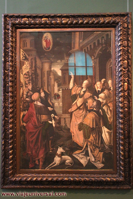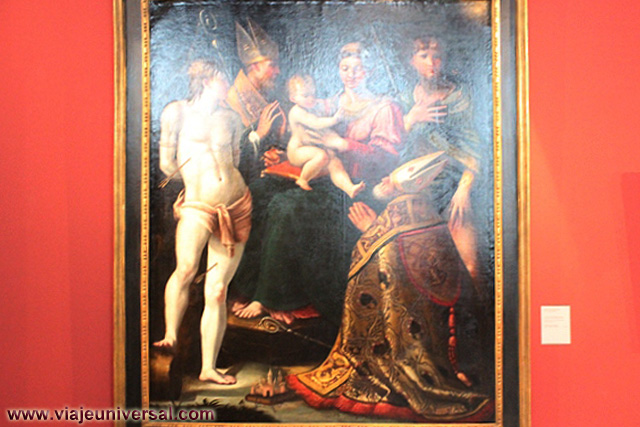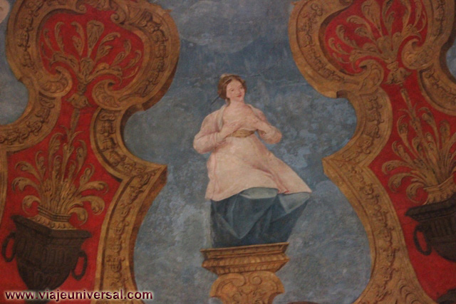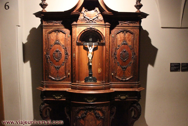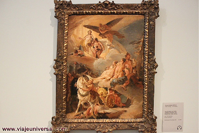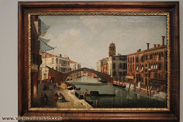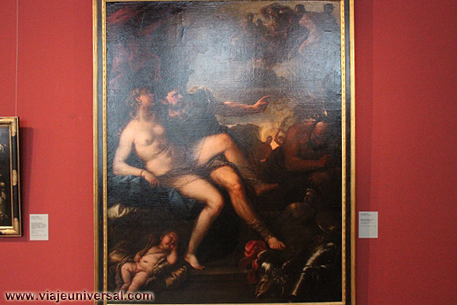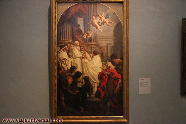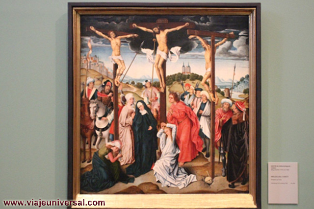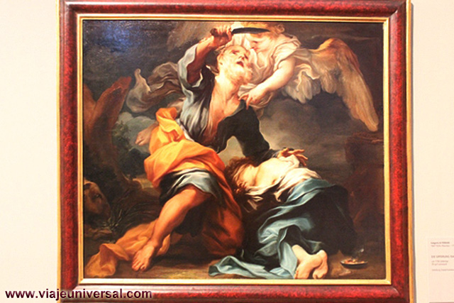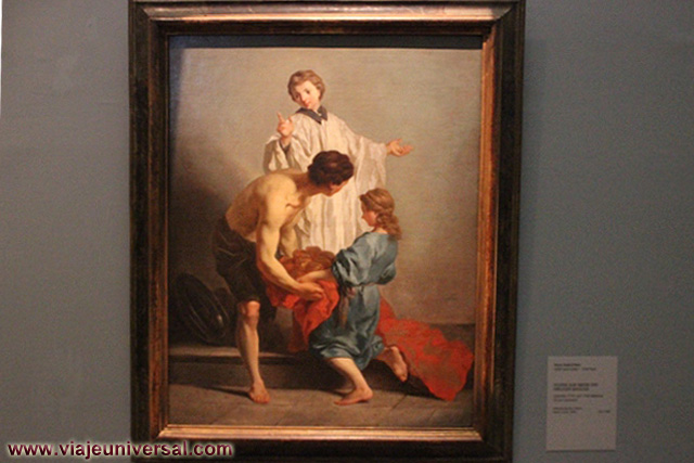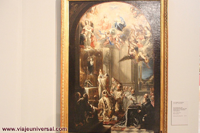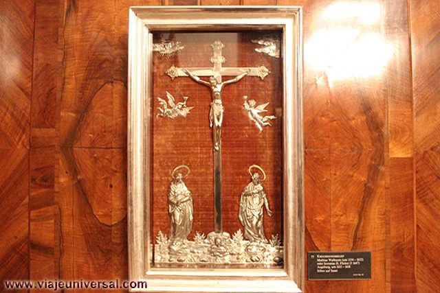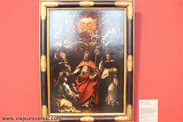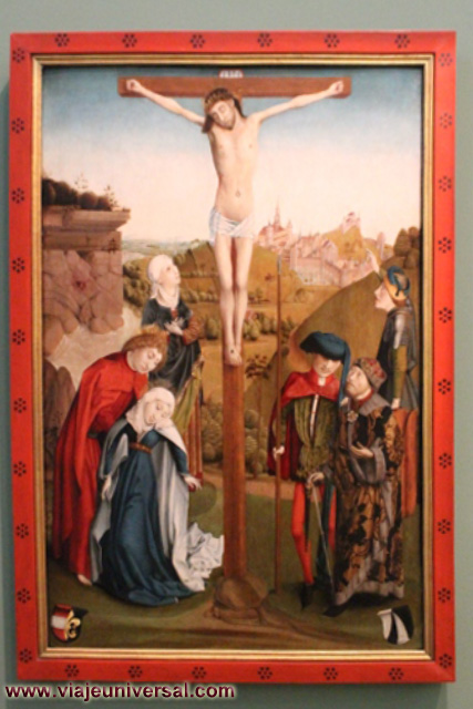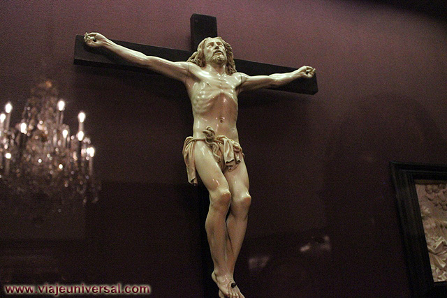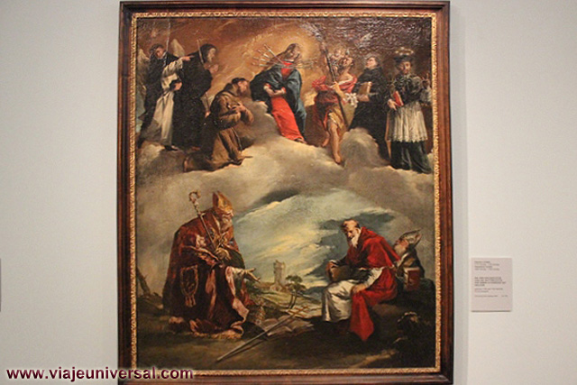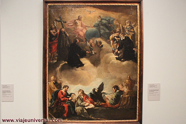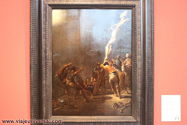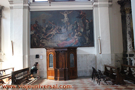 Un poco más lejos se puede admirar la “Crucifixión”, esta data en 1725, es una obra temprana de Giambattista Tiepolo (1696-1770). Se puede identificar al Cristo crucificado en el centro, entre dos criminales, y el grupo dramático de la mujer a los pies de la cruz. Curioso es la presencia en la parte inferior izquierda, dentro de un marco, del retrato del ofrende, debía de ser una de las personas con dinero y poder en aquella época.