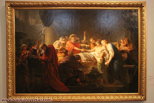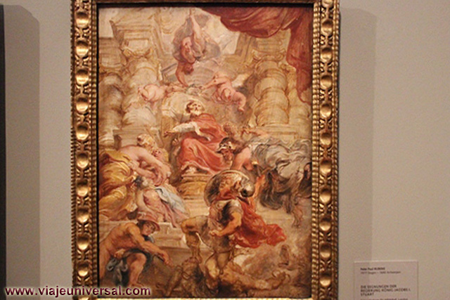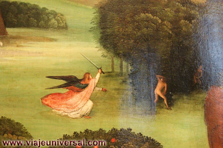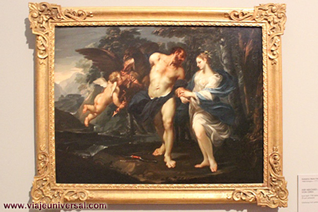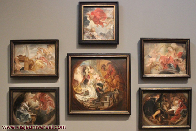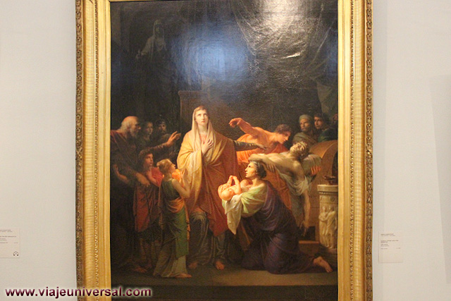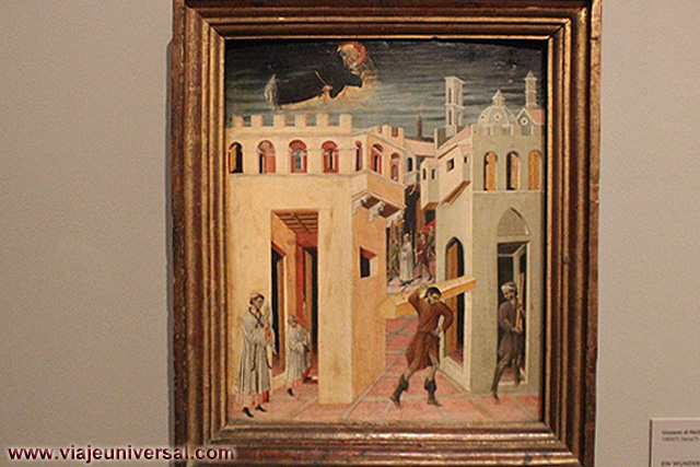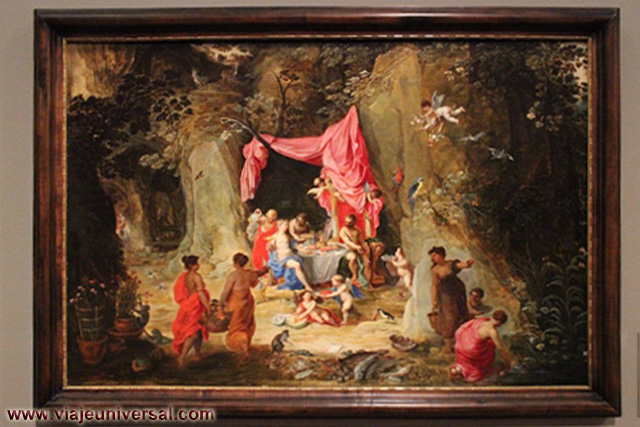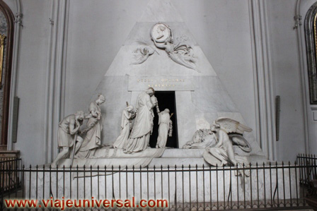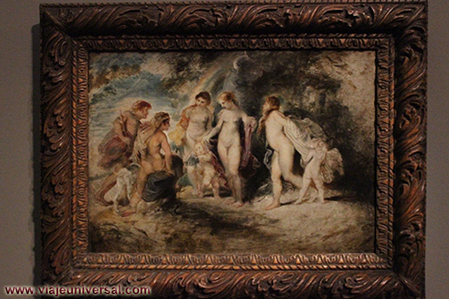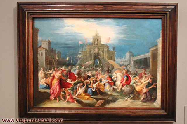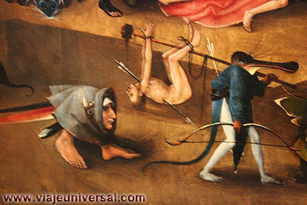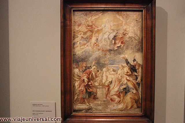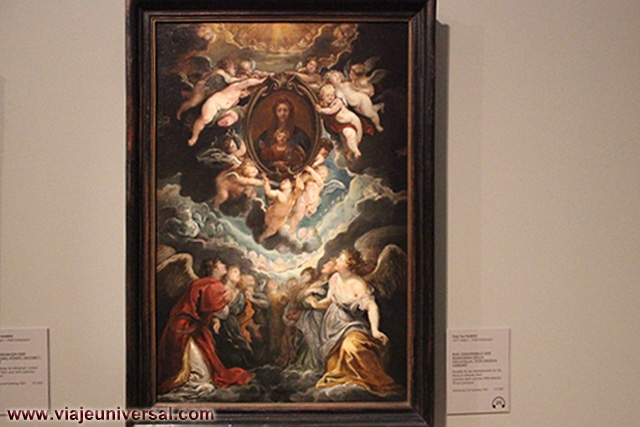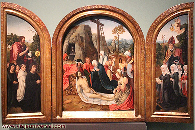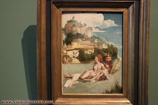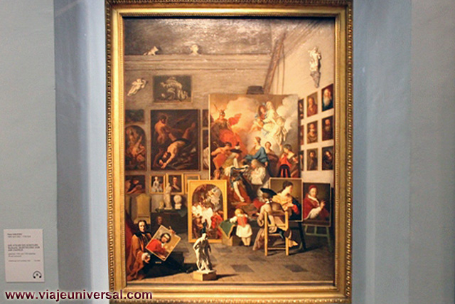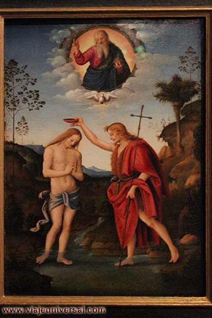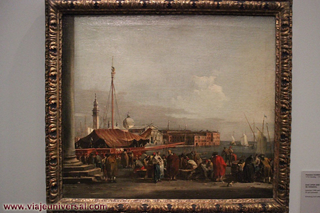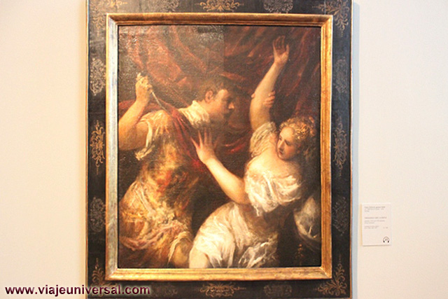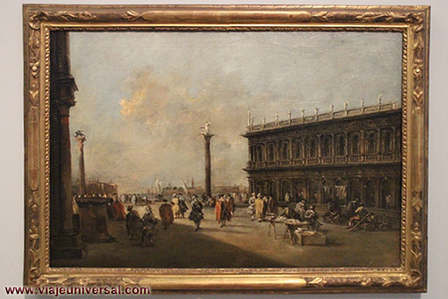 Un poco más lejos se puede admirar la “Crucifixión”, esta data en 1725, es una obra temprana de Giambattista Tiepolo (1696-1770). Se puede identificar al Cristo crucificado en el centro, entre dos criminales, y el grupo dramático de la mujer a los pies de la cruz. Curioso es la presencia en la parte inferior izquierda, dentro de un marco, del retrato del ofrende, debía de ser una de las personas con dinero y poder en aquella época.