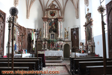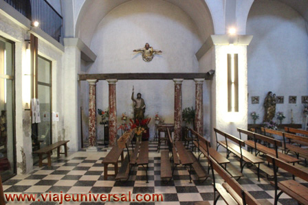 El interior, la planta es de una sola nave que termina en un coro pentagonal, en el lateral se disponen algunas capillas laterales, en el fondo y bajo el coro hay una parte que se ha dedicado a un pequeño museo donde se pueden ver las imágenes más antiguas entre una cristalera, tiene una pila bautismal y una fuente del siglo XVIII, un Cristo del siglo XVI, y otras muchas imágenes de santos.