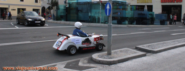 Cogemos el tranvía numero 10 que nos traslada hasta el casco antiguo nos llama la atención que durante el trayecto hay que atravesar una montaña a la entrada a Salzburgo, el trole se encoge y se pone en marcha el motor y funciona como un autobús, y esto lo hace en escasos segundos.