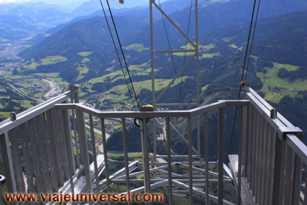 Una puerta nos conduce a un impresionante mirador, las nubes todavía tiene suficientes claros que nos permite dominar todo el valle y las montañas, hace mucho aire y el día es frío y desapacible.