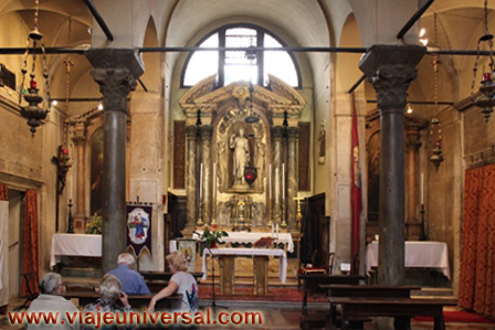 El retablo que adorna el altar esta dedicado a “San Lorenzo Guistiniani, San Albano Orso y Domenico Salvano el Navegante, Obra de A. Marini, datado en 1710.