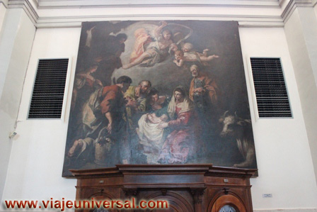 Un poco más adelante, sobre el confesionario de madera, hay una pintura donde se representa “La adoración de los pastores”, lienzo pintado en 1732 por Francesco Fontebasso, discípulo de Sebastiano Ricci, destaca por su variedad cromática.