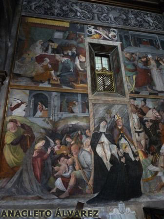 En la iglesia hay diversos frescos de principios del siglo XVI. Los más famosos son el de la Asunción de la Virgen y el de la leyenda de la construcción del monasterio (los ángeles transportan el material y, a la llegada del obispo, el monasterio está terminado).