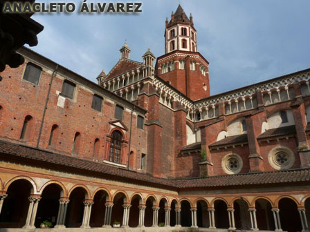 Arquitectónicamente, el monasterio es un buen ejemplo del gótico lombardo. En la construcción predomina el ladrillo y las piedras de los capiteles son de granito verde, como en el caso de La Sacra de S. Michele.