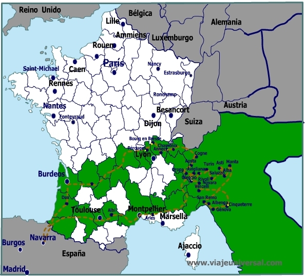 - Llegada a Bourg en Bresse: kilómetro 2406. Rue Marguerite d' Autriche. N 46,19880// E 5,23768.