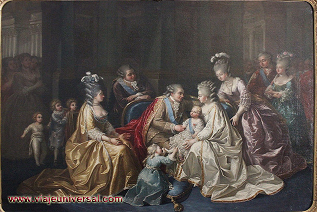 La obra muestra a los reyes de Francia Maria Antonieta y Luis XVI en el centro de la tabla