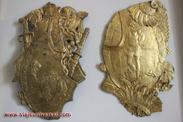 Las siguientes obras de arte “Trofeo de Armas, alegoría de Asia y América”, obra de los maestros artesanos: Ladoyreau, Pierre (orfebre), Buirette, Jacques (escultor), Lespingola, François (escultor), realizado en relieve, bronce dorado y cincelado, está datado entre 1679-1681. Tiene unas medidas de 70x51x3 cm.