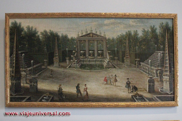 La siguiente pintura es “El bosquecillo del Arco del Triunfo en Versalles”, obra de un pintor anónimo, realizado en óleo sobre lienzo montado sobre madera, está datado en 1701-1725. Tiene unas medidas de 65,5 x 136,5 cm.