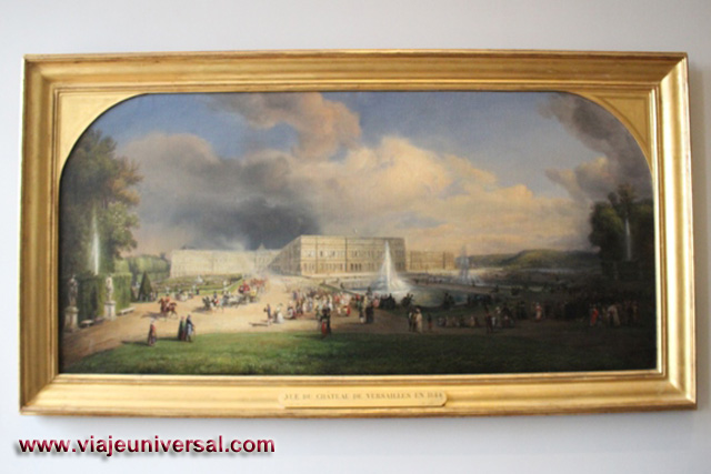 El siguiente cuadro “Vista del castillo y los jardines de Versalles, tomada desde la avenida de París”, obra de Pierre Patel, está datado 1668, realizado en óleo sobre lienzo. Tiene unas medidas de 115 x 161 cm.