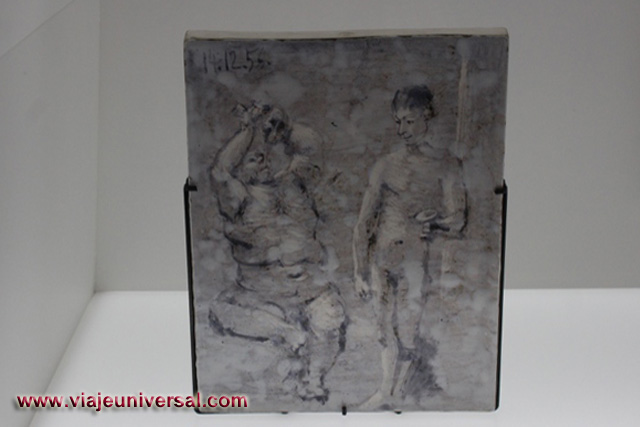 La siguiente escultura es “Charles le Brun, Pintor”, obra del escultor Bosio, Astyanax-Scevola, realizado en mármol, está datado en 1835. Tiene unas medidas de 79,5 x 66 x 32 cm.